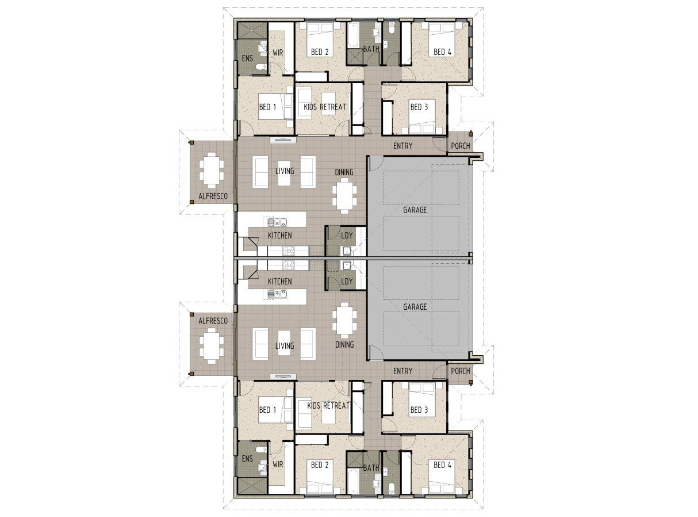 385m2 (TOTAL) 4 Bedrooms Each 2 Bathrooms Each 2 Car Garage Each 1 Storey