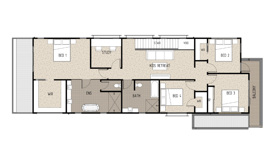 This modern design includes luxury additions and large rooms spread over two levels. The ground floor of this home features a large open plan dining, living and kitchen area which flows out to a good sized outdoor alfresco with built in BBQ area. The kitchen is a spacious and modern design and features an island bench surrounded by more bench space and a large walk in pantry. The ground floor also includes a powder room, separate laundry and large storage room inside the garage. Heading upstairs to the first floor, you will find four good sized bedrooms. The master suite features a massive walk in wardrobe and impressive private ensuite with double shower and separate bath feature. The three remaining bedrooms have both walk in wardrobes (bedrooms 2 and 4) and a built in wardrobe (bedroom 3). A front balcony with access from bedrooms 2 and 3 adds extra character to the home. A large full size family bathroom separates the master bedroom from the other bedrooms. A dedicated study can be found just outside the master bedroom and a large kids retreat/second living room completes this floor.